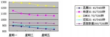 |            1、CPU市场。    P4套件价格狂跌。毒龙650难寻。打磨PIII 800EB横行市场。    新上市的顶级CPU总是价格惊人,然后就在一两个月的时间内快速下跌20%、30%、50%,目前,价格曾经高达1万元的P4套件也正在进入这种急速降价的快车道:本周,这套让发烧友们垂涎的P4套件已经6600元!比刚上市的两个月前狂跌了30%-50%,节前,它还在8000元的价位上呢!估计再过一段时间,就会进入5000元的价位,那时就会有更大的购买量了。    CPU市场上,毒龙处理器依然畅销非凡,现在毒龙700、毒龙750已经成为消费者购买的首选,而廉价的毒龙650已经是芳踪难寻了。确实,一片毒龙700要价是460元,而一片毒龙650要价只有390元,我们大家都知道,对于超频玩家而言,不管是毒龙650还是毒龙700甚至毒龙750,它们的超频极限都是一样的;特别是KT133A主板上市后,它丰富的超频辅助能力使得毒龙超频变得更加容易、更加稳定,这就难怪毒龙650大受超频玩家青睐了。如果想买毒龙回去练铅笔超频大法,毒龙650可谓价廉物美了。不过,过完春节后,市场上的毒龙650很难见到几块,想想节前只卖370元的毒龙650,真是心有不甘。这也没有办法,因为毒龙650停产了。    近段时间,关于PIII 800EB的问题闹得沸沸扬扬,这主要是因为市场上的PIII 800EB出现了不少的打磨品,导致价格、销售都出现混乱。打磨PIII对准PIII 800EB大量出现,也是来借PIII 800EB畅销的光来了,确实,近一个月以来,PIII 800EB是PIII系列中最畅销的处理器。我们发现,那些打磨的PIII 800EB主要来自PIII 600E,这两种处理器都是6倍频的,所不同的是PIII 600E使用100M外频,而PIII 800EB采用133M外频,那些能跑133M外频的PIII 600E就在JS的操作下摇身一变成了PIII 800EB,本来,这两种处理器价差有好几百元!事实上,可以在133外频下稳定工作的PIII 600E,在大部分主板上根本看不出区别,使得一些消费者上了当。其实,Intel提供了一个PIII的识别软件FID,很容易发现PIII是否打磨品(可以在http://www.thethirdmedia.com/software/fid.zip下载)。当然,你也可以找块软跳线的主板,让它自动识别PIII CPU出厂设置,最典型的当然就是intel的原装主板,如I815E主板D815EEA,可谓所有intel CPU的试金石。 2、内存市场。    内存价格小幅震荡。PC133 256M内存价格下跌。    继上周128M内存条价格探低到300元价位后,本周内存市场开始在300元价位进行震荡整理,并且在周三回升到340元的价位,涨幅一度超过了10%。当时,内存条的这个价格回升还让整个电子市场的商家都兴奋了一阵,因为电子市场总是买涨不买跌,往往在内存价格从低价反弹后,市场里就会出现众多的装机族,从而带动诸如CPU、硬盘、主板等销售走旺。这次的价格上涨倒不是国内商家预谋抬价,主要原因是国外的晶元价格以及内存条价格出现了明显的价格上浮。例如在亚洲市场上,128M晶元价格反跌为涨,已上涨了0.1美元,从前期的$4.20提升到$4.30。不过,由于上涨势头非常脆弱,所以随后几日内存价格又跌了回来,并最终在周末重新回落到310元的价位。    本周的内存价格变动,最让消费者高兴的还是PC133 256M的价格变化了,目前,现代PC133 256M内存已经730元了,这个价格可是不少朋友购买自己的128M内存条的价位! 3、硬盘市场。    硬盘市场动荡,水货继续泛滥。硬盘价格全面下跌。    节后的硬盘市场一直就不稳定,不是缺货就是价格混乱。一般来说,硬盘货源紧缺的时候水货就会跳上台面,现在也正是这种状况:不但市面上的西部数据硬盘大都是只有一年质保的货(正规货应该是三年),而且市场上的迈拓硬盘也出了些来历不明的货源。最近带一个朋友买硬盘,就在一个柜台遇到了水货迈拓星钻硬盘。这里给想买硬盘或攒机的朋友一个忠告,现在在同一市场里不同柜台的硬盘报价都不太一样,读者朋友可别光贪几十元的便宜,买了便宜货少了质保就不值了,怎么说硬盘也是上千块的东西,而且它一坏,存储资料的损失更是无法估计的。现在什么硬盘都有水货,大家一定要注意质保情况。    由于逐渐有一些新货进入市场,本周硬盘价格是稳中有降,特别是倍受欢迎的IBM 75GXP 30.7G硬盘,已经从上周的1340元滑落到现在的1230元,降幅居然有110元,需要买硬盘的读者朋友可以考虑出手了。不但IBM硬盘降价,市面上主流的硬盘基本上都有20-40元的跌幅,朋友们可以参考一下下面的价格曲线: